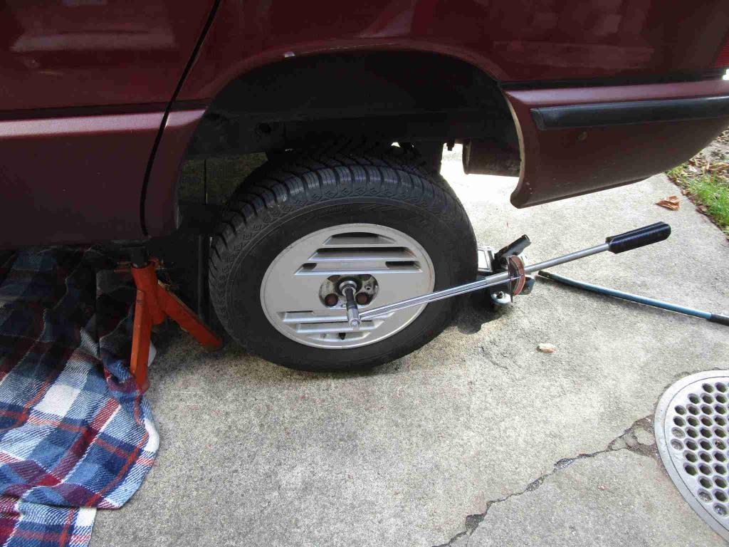 Das Verfahren: Eine Seite aufbocken, mit dem Drehmomentschlüssel (am besten das alte Teil mit Zeiger), mit 100 Nm ziehen, die Vierteldrehung sollte etwa 25 Sekunden dauern.