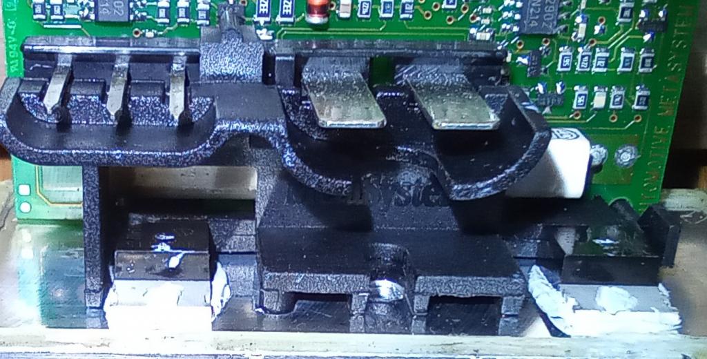 Wenn ich das nach Bild richtig sehe, werden die Transistoren mechanisch lediglich durch die Kunststoffbrücke auf den Kühlkörper aufgedrückt.