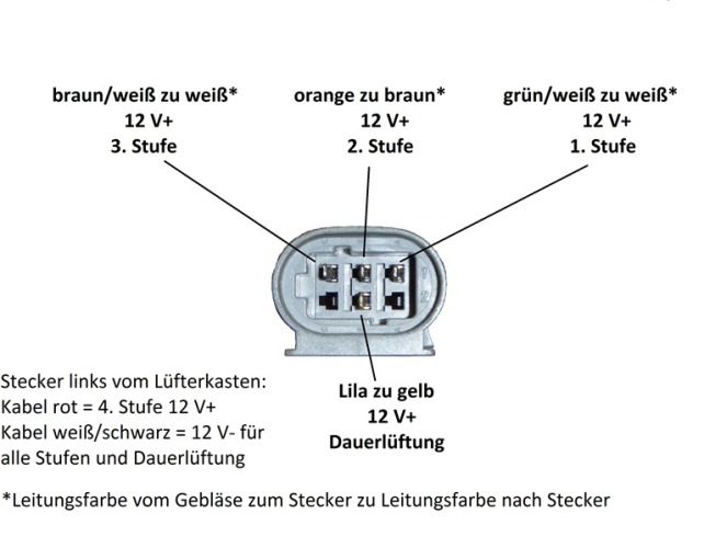 Ich glaube aber dort wird Spannung für die Stufen 1, 2, 3 und 4 anliegen. Stufe 4 hat eigenes Relais vorne rechts im Motorraum.